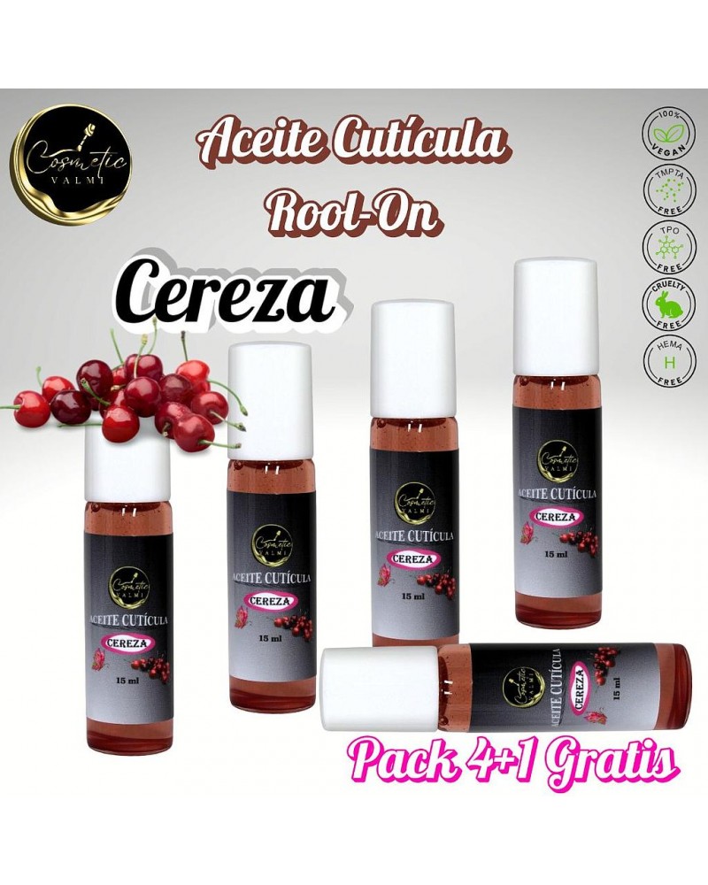 Pack Aceite Cutículas Rool-On Cereza 15ml. 4 + 1 Gratis. Vegano, TPO Free, TMPTA Free. Hidratador de Cutículas.
