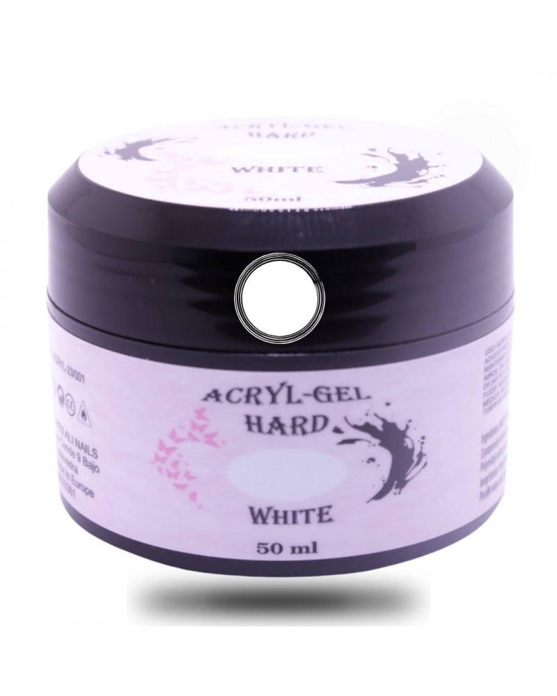 El Acryl-gel Hard que es un producto híbrido entre Gel y Acrílico, que nos aporta lo mejor de cada uno de ellos, nuestro Acryl-gel Hard se diferencia de los otros Acryl-gel o Poli Gel que hay en el mercado en que es duro y resistente como el Acrílico y manejable como un Gel Autonivelante y se pueden construir los 5 dedos a la vez y secar en lampara juntos gracias a que no se mueve después de terminar la construcción de la uña. Fácil manejo y muy resistente. Se puede trabajar con Moldes, con Tips y con el sistema novedoso de inversa Dual System. Entre sus características podemos destacar que no tiene olor, ofrece unas uñas duras y resistentes igual que el acrílico, anti-move.... además se puede moldear sin que se seque. No deja capa de dispersión. Secado en lampara LED 60 seg, UV 120seg.