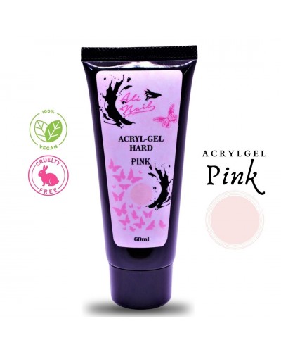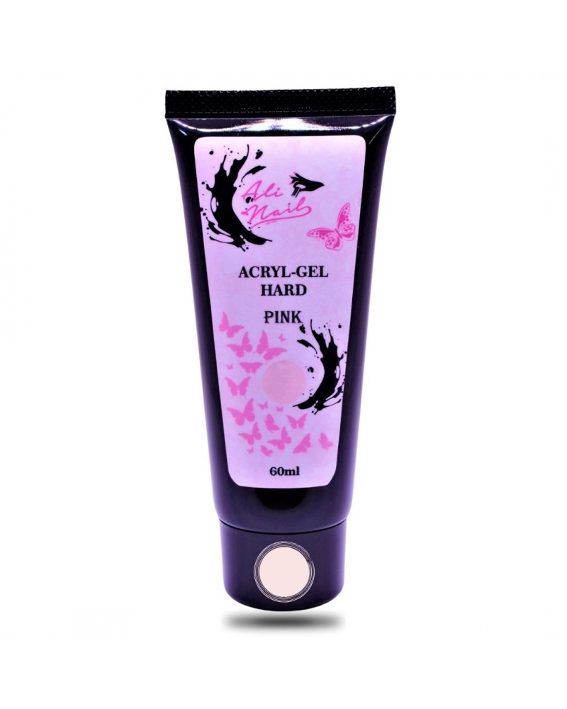 El Acryl-gel Hard que es un producto híbrido entre Gel y Acrílico, que nos aporta lo mejor de cada uno de ellos, nuestro Acryl-gel Hard se diferencia de los otros Acryl-gel o Poli Gel que hay en el mercado en que es duro y resistente como el Acrílico y manejable como un Gel Autonivelante y se pueden construir los 5 dedos a la vez y secar en lampara juntos gracias a que no se mueve después de terminar la construcción de la uña. Fácil manejo y muy resistente. Se puede trabajar con Moldes, con Tips y con el sistema novedoso de inversa Dual System. Entre sus características podemos destacar que no tiene olor, ofrece unas uñas duras y resistentes igual que el acrílico, anti-move.... además se puede moldear sin que se seque. No deja capa de dispersión. Secado en lampara LED 60 seg, UV 120seg.