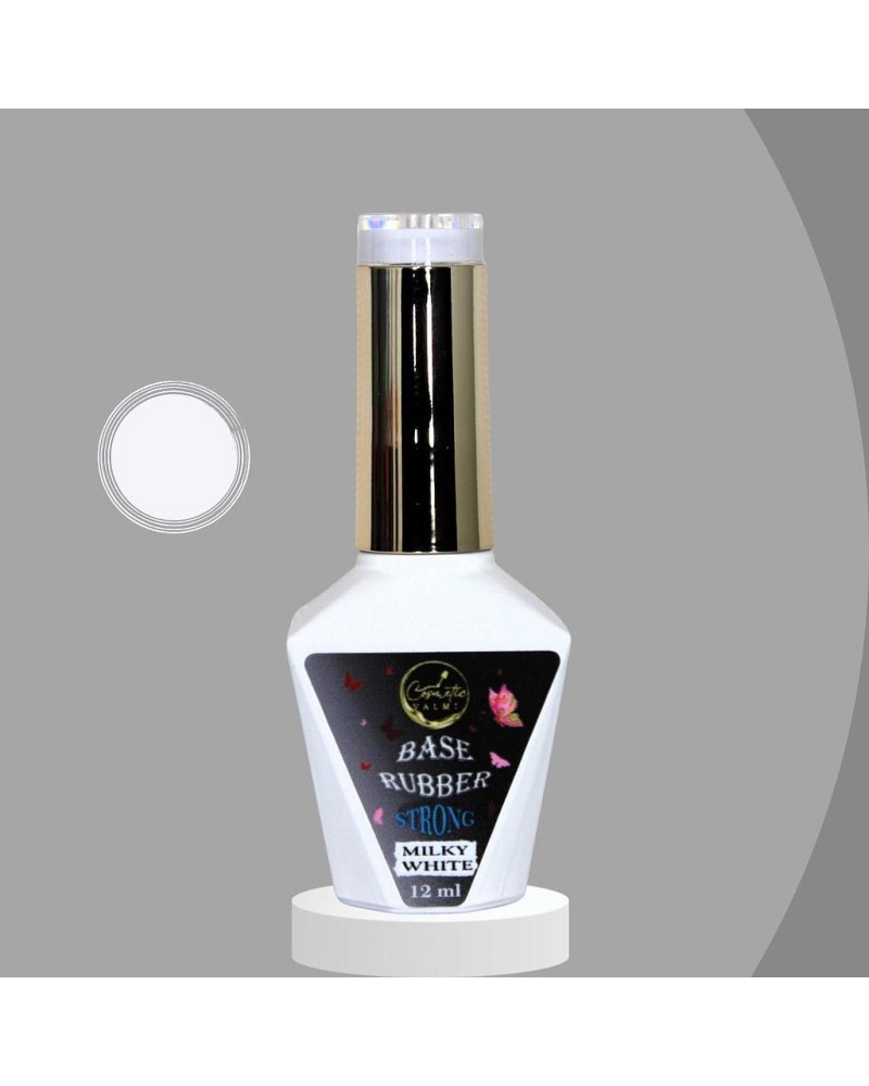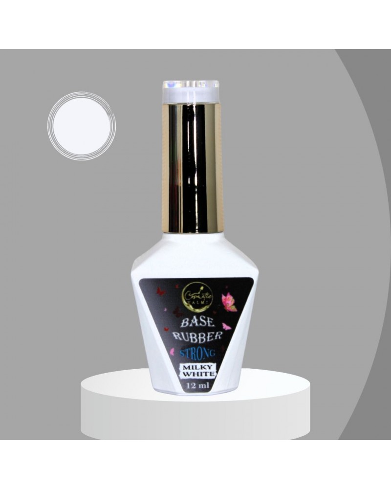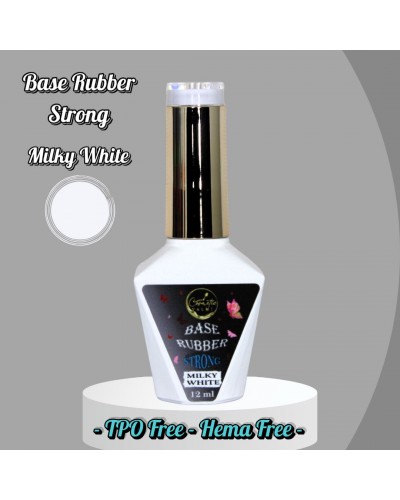 Base Rubber Strong Milky White. Hema Free, Cruelty Free, TPO Free, TMPTA Free. Base refuerzo de uñas semipermanente. 12ml