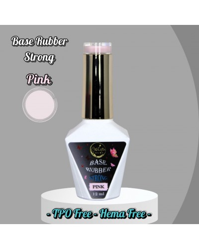 Base Rubber Strong Pink. Hema Free, Cruelty Free, TPO Free, TMPTA Free. Base refuerzo de uñas semipermanente. 12ml