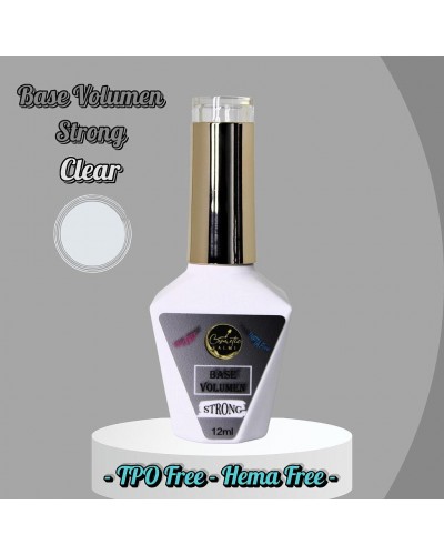 Base Volumen Strong Clear 12ml. TPO Free, TMPTA Free, Cruelty Free. Base refuerzo uñas semipermanentes.