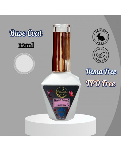 Base Coat Semipermanente 12ml. Vegana, Hema Free. Cruelty Free, TPO Free, TMPTA Free. (sin olor)