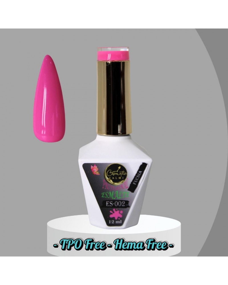 Esmalte Color ES-002 (Fucsia) 12ml. Hema Free, TPO Free, TMPTA Free, Cruelty Free. Semipermanente de uñas.