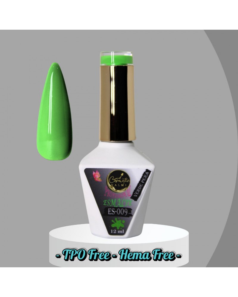 Esmalte Color ES-009 (Verde Pera) 12ml. Hema Free, TPO Free, TMPTA Free, Cruelty Free. Semipermanente de uñas.