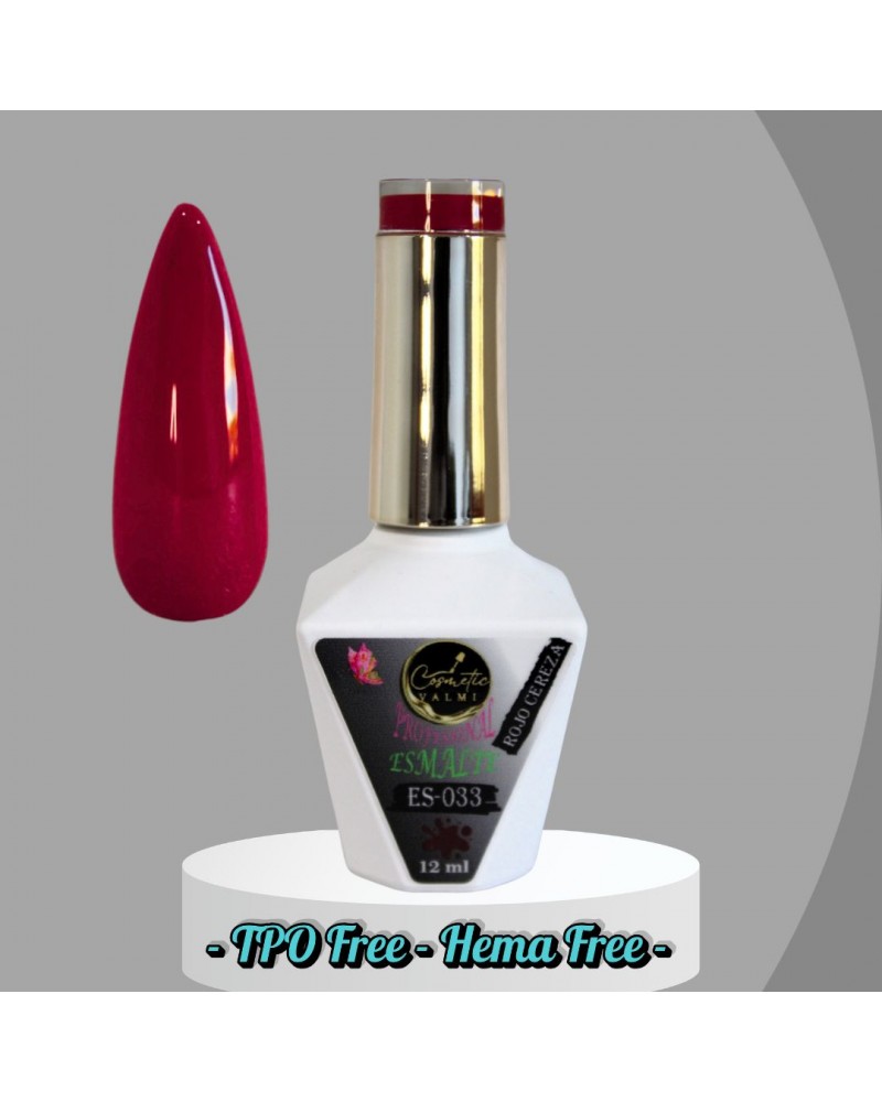 Esmalte Color ES-033 (Rojo Cereza) 12ml. Hema Free, TPO Free, TMPTA Free, Cruelty Free. Semipermanente de uñas.