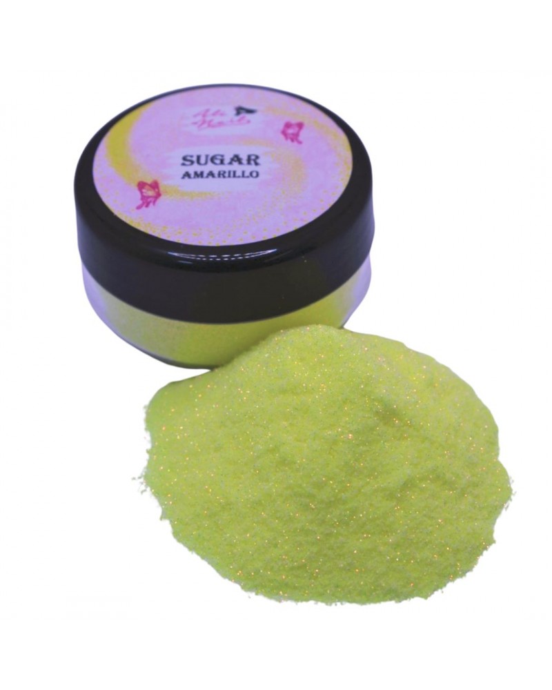 Arena de azucar Amarilla brillante ideal para decoraciones unicas. Diseña tus propias uñas con decoraciones simples y rápidas.