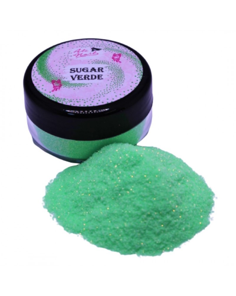 Arena de azucar Verde brillante ideal para decoraciones unicas. Diseña tus propias uñas con decoraciones simples y rápidas.