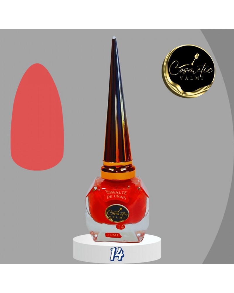 Esmalte Clásico es un clásico de los clásicos, Cosmetic Valmi no deja que se pierda la tradiccón del producto pionero en el mundo de las uñas. Nuestro esmalte tiene una fabulosa pigmentación manteniendo una consistencia cremosa quedando las pinceladas igualadas, lisas y secas al instante. De fácil aplicación. Es altamente resistente a los detergentes, jabones y productos domésticos. Es un esmalte que no lleva pigmentos tipoferroso donde se puede observar su gran color y calidad en toda nuestra gama de colores. Todos nuestros esmaltes Clásicos son veganos, no testados en animales, son aptos para celíacos, embarazadas y niños. Es un esmalte "5 FREE", son esmaltes libres de tolueno, libres de formaldehido, libres de Ftalato de dibutilo ( DBP ), libres de resina de formaldehido y libres de alcanfor. Bote 10 ml Aplicación: Aplicar después de preparar la uña se puede aplicar directamente sobre la uña natural, acrílico o gel, sobre uña natural se recomienda siempre aplicar una base antes del color aunque no es necesario. Al termino del trabajo se recomienda aplicar el secante Express para un secado rápido, aproximadamente 30Seg. Advertencia: Solo para uso profesional, en caso de irritación o reacción alérgica dejar de utilizar el producto y si fuese necesario consultar con un medico, mantener lejos del alcance de los niños, no exponer a temperaturas +20º, -3º o directamente a la luz solar.