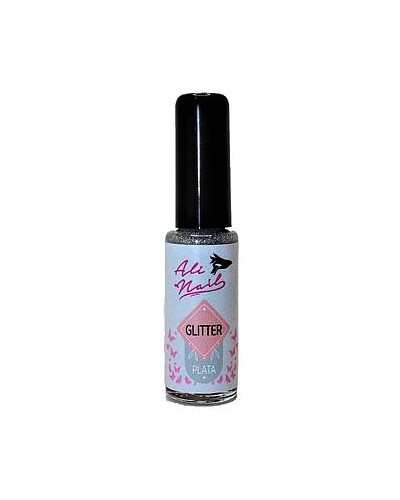 Esmalte Tradicional color Plata Glitter. 7ml - Pincel Decorativo Vegano.
