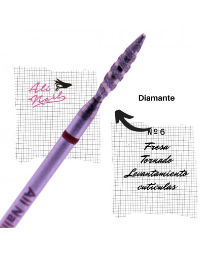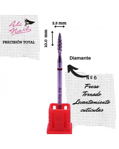 Fresa 09 Tornado levantamiento cutículas (Roja) grosor medio 2,3x10mm punta de Diamante.
