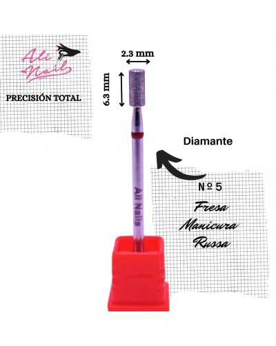 Fresa 05 Manicura punta cilíndrica (Roja) grosor medio 2,3X6,3mm punta de Diamante.
