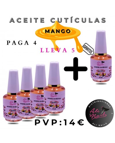 Pack 4+1 Gratis Aceite de Cutículas Mango 15ml Vegano.