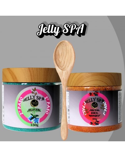 Jelly Spa es un producto con una fórmula mágica en polvo que, al mezclarse con agua, se convierte rápidamente en una gelatina con aromas encantadores para nuestros pies y nos brinda múltiples ventajas.. Gracias a su consistencia gelatinosa, brinda relajación y exfoliación, preparando tus pies para cualquier tratamiento adicional. También puede ser utilizado como un toque final después de una pedicura, dejando la piel perfectamente flexible e hidratada. Llevaras 15 días los pies super suaves y a su vez ayuda a la circulación. PASO 1. Jelly Spa es un tratamiento que hidrata y suaviza la piel de tus pies. Gracias a su textura gelatinosa, relaja y exfolia preparándolos para cualquier tratamiento posterior. También se puede utilizar como tratamiento finalizador después de una pedicura, dejando una piel perfectamente elástica e hidratada. Polvo mágico que en combinación con agua la transforma en unos instantes en una gelatina con unos aromas muy agradables para nuestros píes y que nos ofrece múltiples beneficios. PASO 2. Dilution. Para volver a convertir la gelatina en agua necesitamos añadir los polvos del paso número 2. MODO EMPLEO PASO 1 : Llene el recipiente de pedicura con agua tibia a caliente (sobre 1litro o 1,5litros). Dependiendo del tamaño de el, es posible que necesite más de cantidad de producto, como mínimo 10 gramos por 1 litro de agua. ( 1 cucharada por litro ) Vierta el contenido del envase paso 1 en agua. El cliente debe de remover con los pies para asegurarte de que la jalea no se hunda en la parte inferior del recipiente. Aproximadamente 10min. Disfruta de las sensaciones tan aromáticas de la jelly spa. PASO 2 : Vierte el recipiente del paso 2 en la gelatina. ( 2 cucharadas por litro de agua ). Espera de 5 a 10 minutos para que se disuelva por competo y cambie su color. Vacía y limpia el recipiente para una nueva pedicura. Advertencia: Solo para uso profesional, mantener lejos del alcance de los niños, no exponer a altas ni bajas temperaturas, en caso de irritación consultelo con su médico.