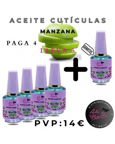 Pack 4+1 Gratis Aceite de Cutículas Manzana 15ml Vegano.