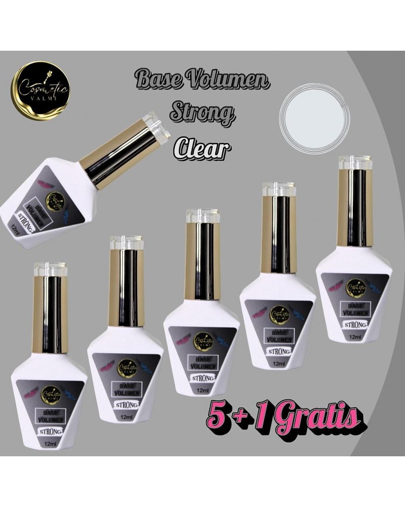 Pack Base Volumen Clear 5 + 1 Gratis 12ml. TPO Free, TMPTA Free. Base refuerzo uñas semipermanentes.