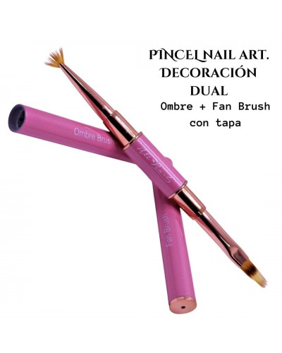 Pincel decoración dual Ombre + Fan con tapa es un pincel ideal para degradados y decoraciones de salón. Con este pincel podras lograr decoraciones espectaculares de todo tipo, donde los degradados y difuminados te serán más facil de lograr con este pincel.