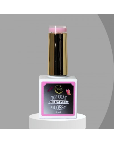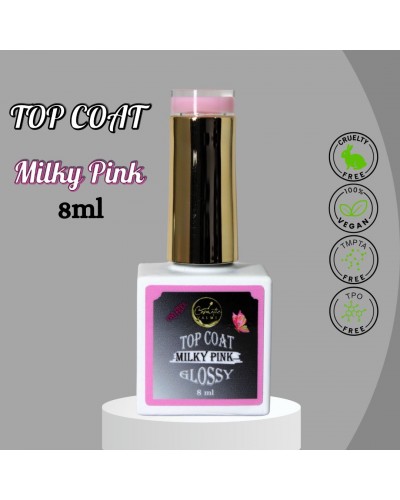 Top Coat Glossy Milky Pink 8ml. Hema Free, Cruelty Free, TPO Free, TMPTA Free. Brillo de uñas Rosa Lechoso