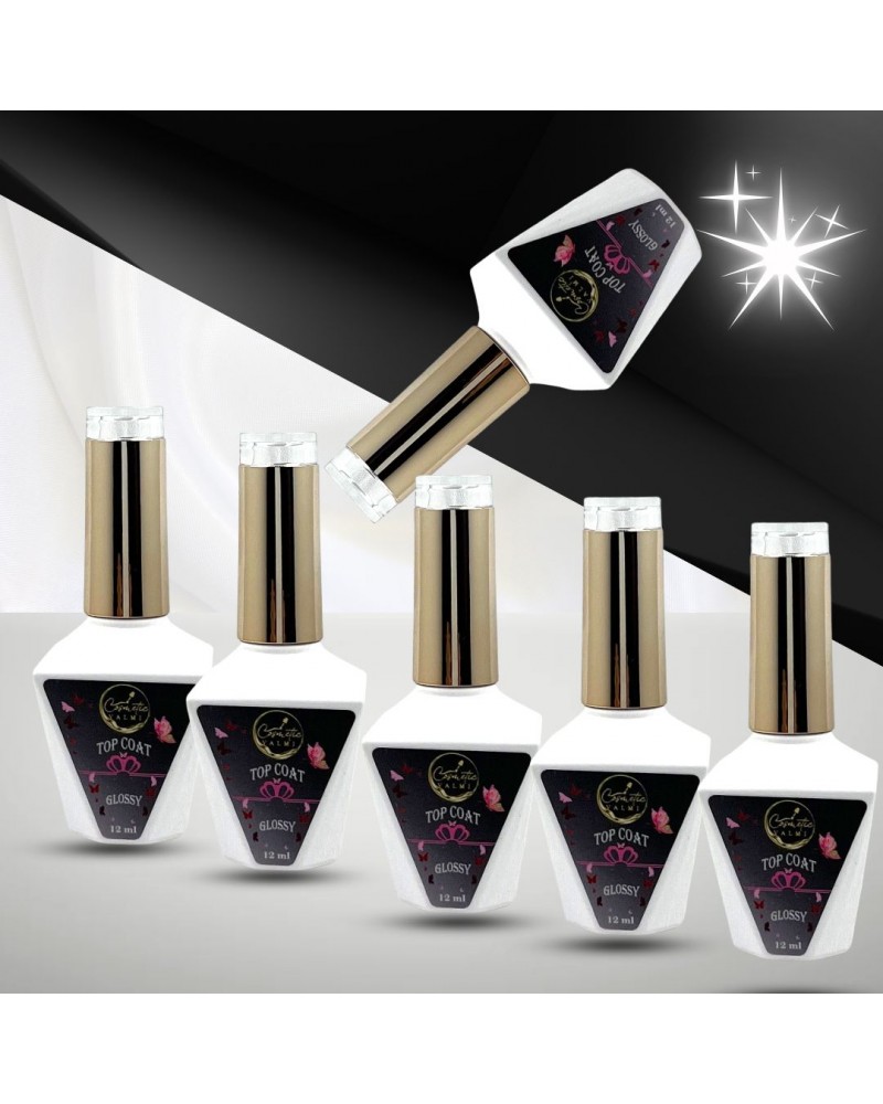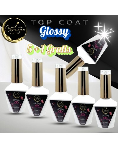 Pack Top Coat Glossy 12ml. 5+1 Gratis. Hema Free, TPO Free, TMPTA Free. Brillo de uñas.