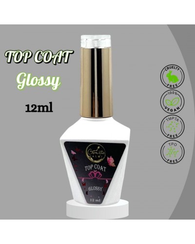 Top Coat Glossy alto en brillo ideal para fortalecer y dar brillo a esmalte semipermanente, acrílico, gel constructor, acrylGel, etc.