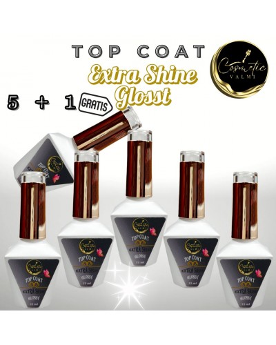Top Coat Extra Shine Glossy 12ml Vegano. Vegano, Hema Free, Cuelty Free, TPO Free. Brillo de uñas.