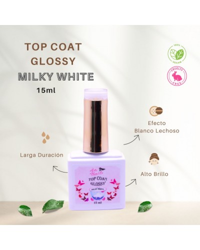 Top Coat Glossy Milky White 15ml. Vegano, Cuelty Free, TPO Free.