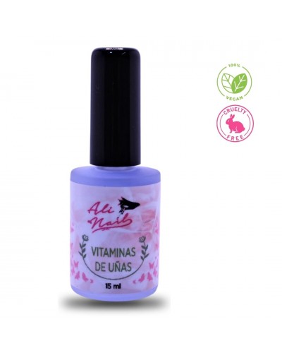 Ali Nails acaba de presentar un producto Vitamínico destinado a reforzar el crecimiento de la uña, creando una capa protectora y evita decoloración de la uña. Es un producto vegano, no testados en animales, son aptos para celíacos, embarazadas y niños. "5 FREE", es un producto libre de tolueno, libre de formaldehido, libre de Ftalato de dibutilo ( DBP ), libre de resina de formaldehido y libre de alcanfor. Mezcla de vitaminas ( A, E, B5, C , aceite de argán) que estimula y aporta flexibilidad a la uña. Sirve de protección de la uña contra la deshidratación y ayuda a mantener el color del esmalte más tiempo.